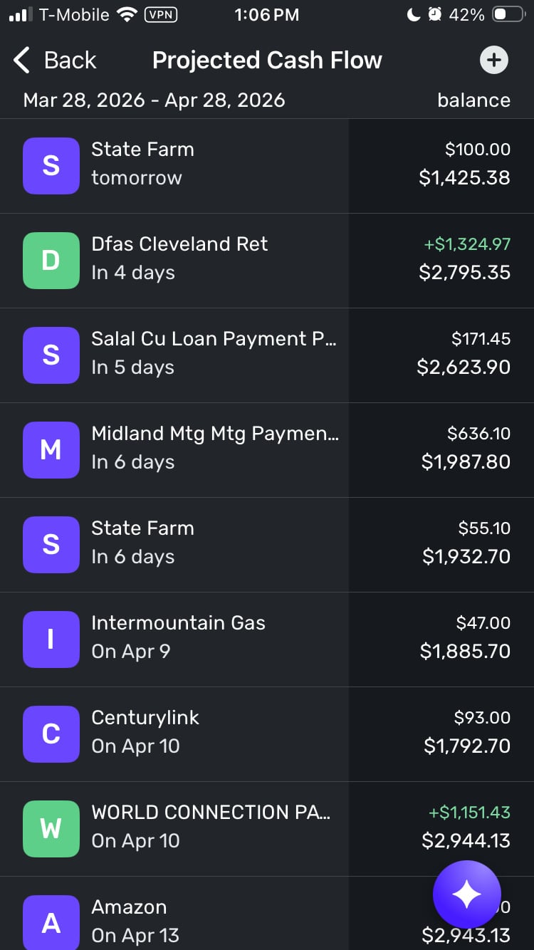 After editing the State Farm reminder for tomorrow, I noticed the projected balance for that one reminder updated, but everything after that was unchanged.