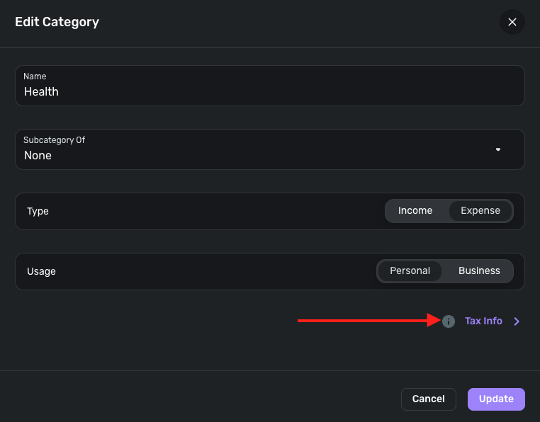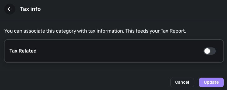 You can create your own categories as well, and then associate them as tax-related by editing or creating a category and then selecting the "Tax Info" option in the bottom right. Once there, you would just set the Tax Related switch to On.