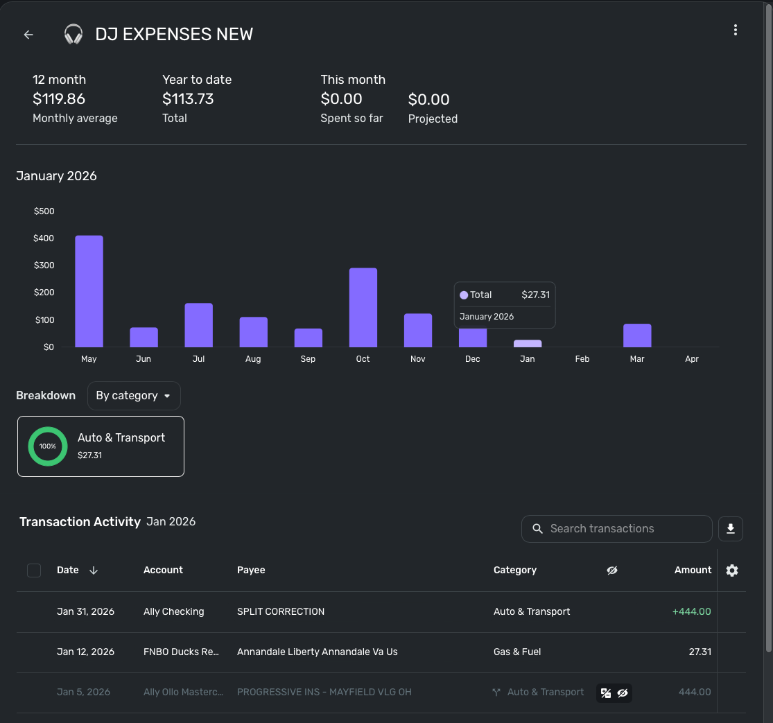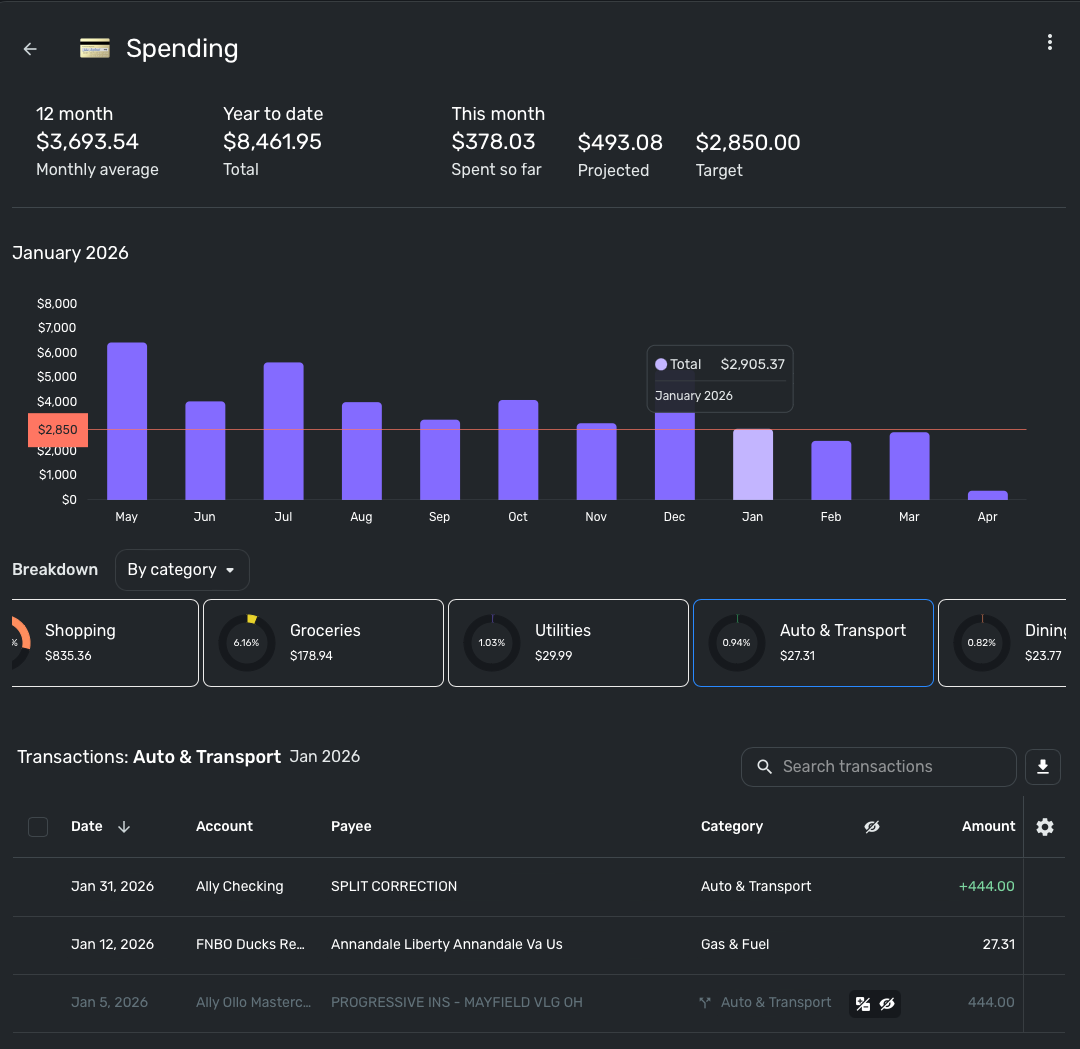You can see here the split should be excluded but is being counted towards the Auto and Transport Total. 471 instead of being 27