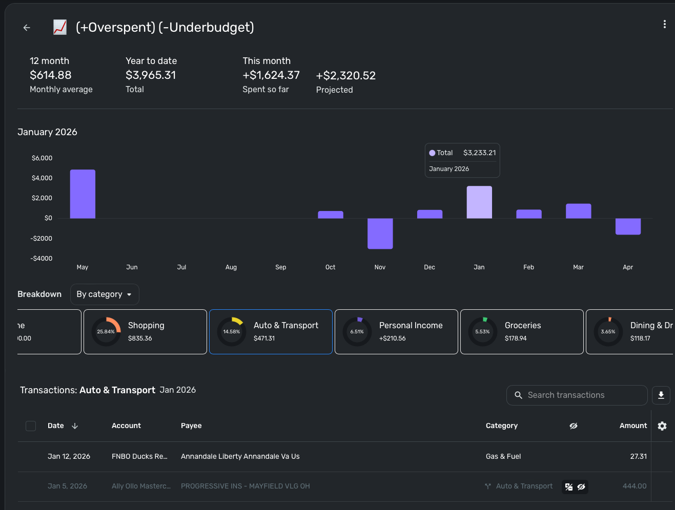 I am still unable to reproduce this behavior, unfortunately, so it seems this issue may be specific to your dataset. Can you show a screenshot of the transaction detail window for the Auto & Transport transaction from the watchlist screenshot you posted previously?