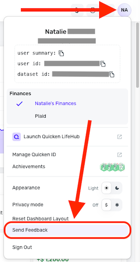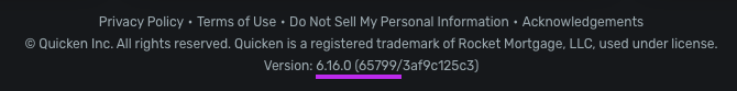 Additionally, we will need the version and build of Quicken Simplifi you are using, as well as the web browser and operating system, and their associated versions. You can locate your version and build at the bottom of the Dashboard.