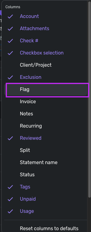 How do I add a flag field to transactions?