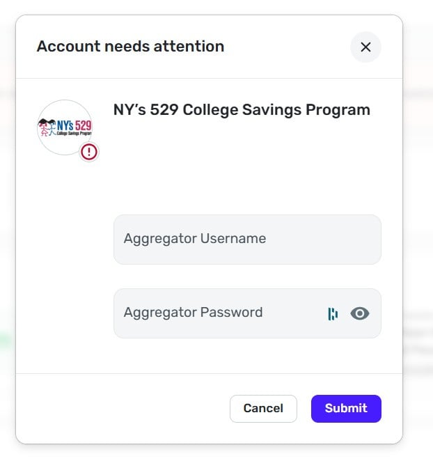 Hello, I’m unable to update my NY 529 College Savings Program account in Simplifi.
