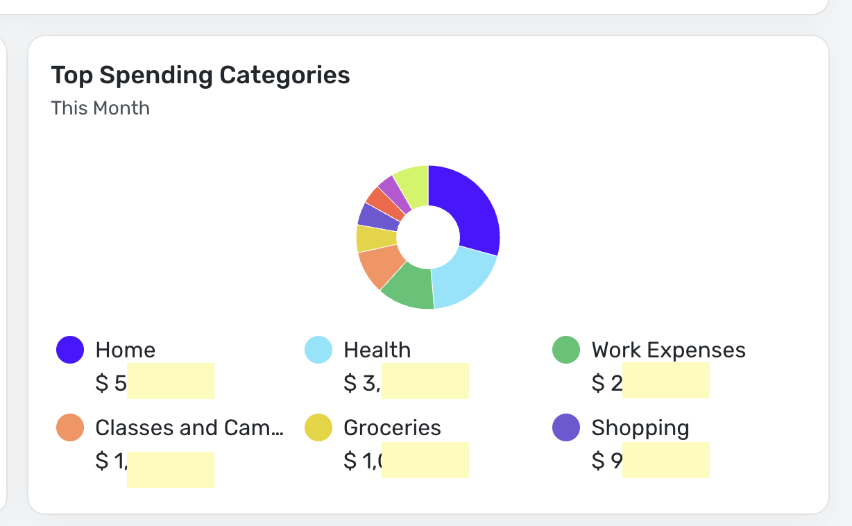 the Top Spending Categories on the dashboard shows a graph and top categories. But it does not show the total for the month. That should be easy to do. instead, I have to click on total expenses. It's not just the saving of one click. I want to see this month in context with others.