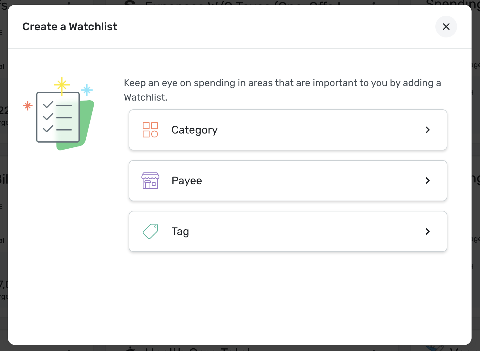 There is a request to exclude tags from reports and spending plan here and from watchlists here. Not sure why they are separate as they both use tags to create the exclusion.