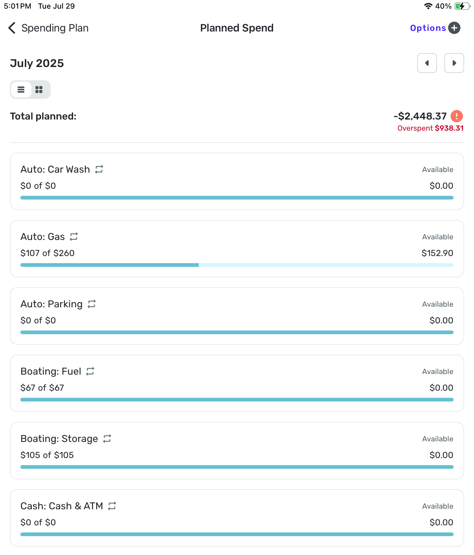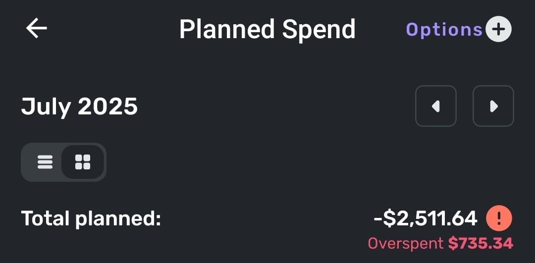 In the Planned Spend view Simplifi seems to be insisting I've overspent, despite not currently having any categories of planned spending that are overspent. Unsure if it's using my current categories today as its baseline or if it's using what they were on July 1, as I did modify them over the course of the month. If it's the latter I would suggest that this view instead uses current categories.
