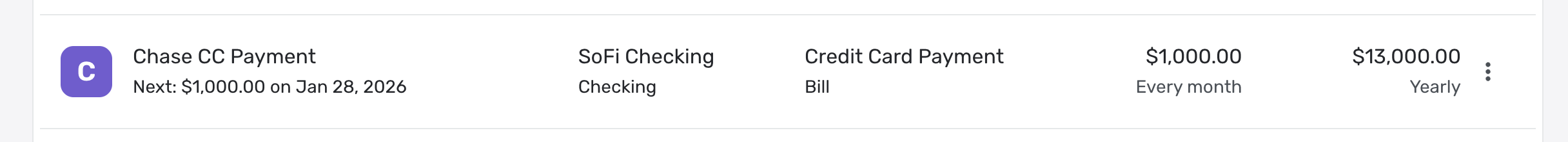 In what world does a $1000 monthly payment = $13,000 yearly? I have no current transactions for this amount, and there are only 12 months in a year, so am I unreasonable in expecting this to be $12,000 yearly?