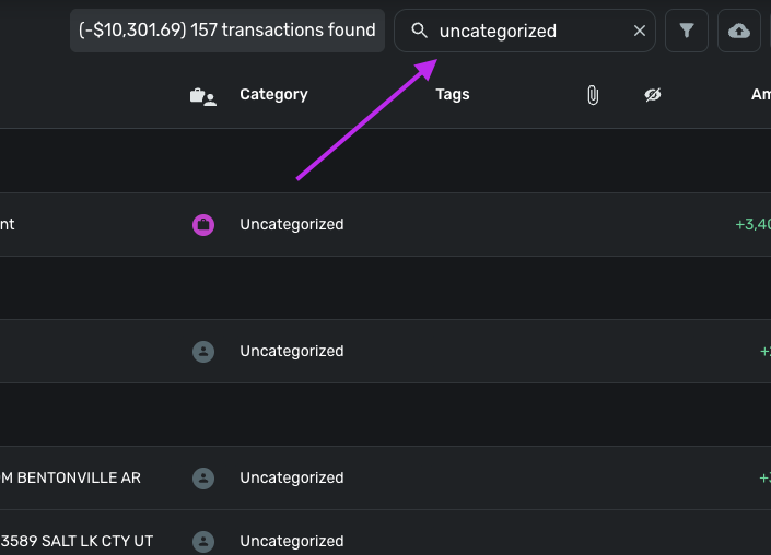 Everyday I open Simplifi and want to find all uncategorized transactions, so I can categorize them, and add notes to them.